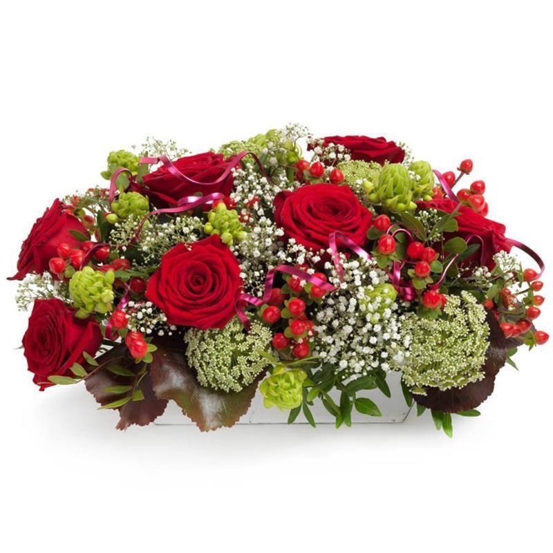 Królowa kwiatów róża będzie najlepszym symbolem, tego co chcesz przekazać. Razem z gipsówką, hypericum i koprem tworzą niezwykle spójną kompozycję. Dołącz do niej bilecik z życzeniami. Aranżacja ułożona będzie przez lokalną kwiaciarnię EuroFlorist.