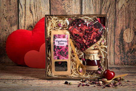 - Idealny upominek na walentynki, dzień kobiet lub dzień matki. Kosz prezentowy pełen słodkości, udekorowany jest dodatkowo pączkami róż, dzięki czemu po otwarciu unosi się delikatny kwiatowy zapach.